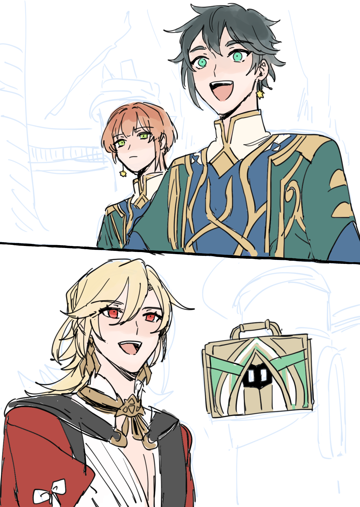 カーヴェの練習と花神ゼン描いてました。いつになってもカーヴェの髪が上手に描けません…。誰かコツとかあったら教えてくれ…。