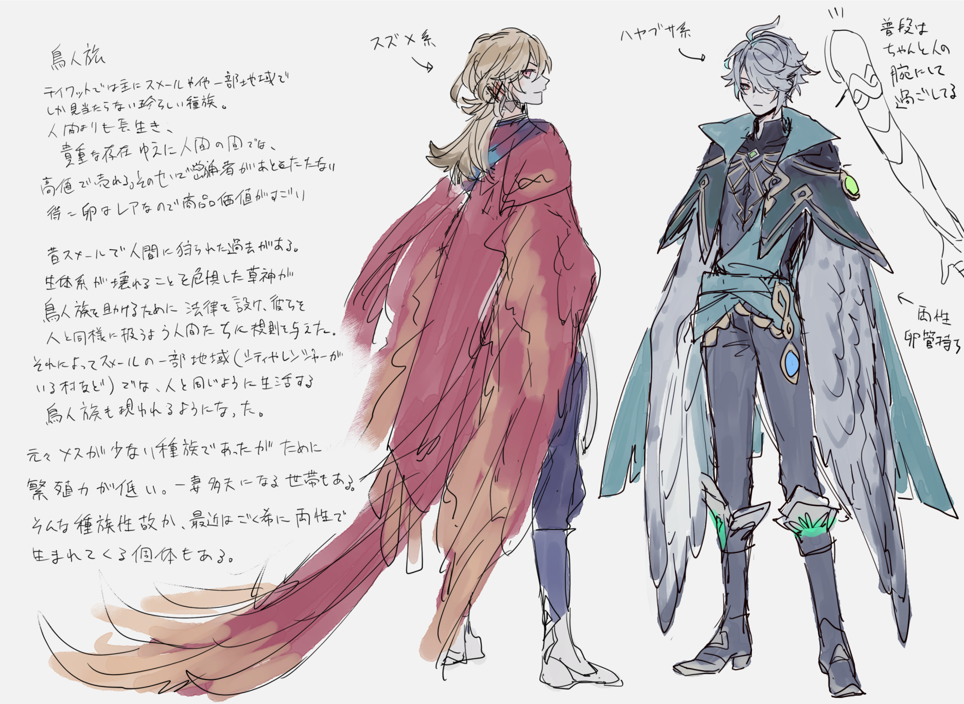 続きからこの鳥人パロの設定というか時代背景みたいなのを書いたものです。ただのメモ書きみたいなものなのですが、興味のある方はどうぞ読んでみてください^^